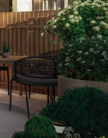 Vast panoramas, sky up-close, and intimate mini-garden with decorative lighting