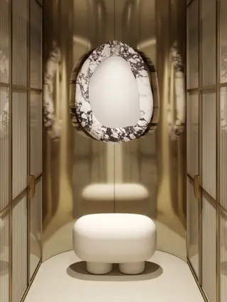 Smooth corners, flowing contours, and cascading transparent balconies harmonize with the natural surroundings.