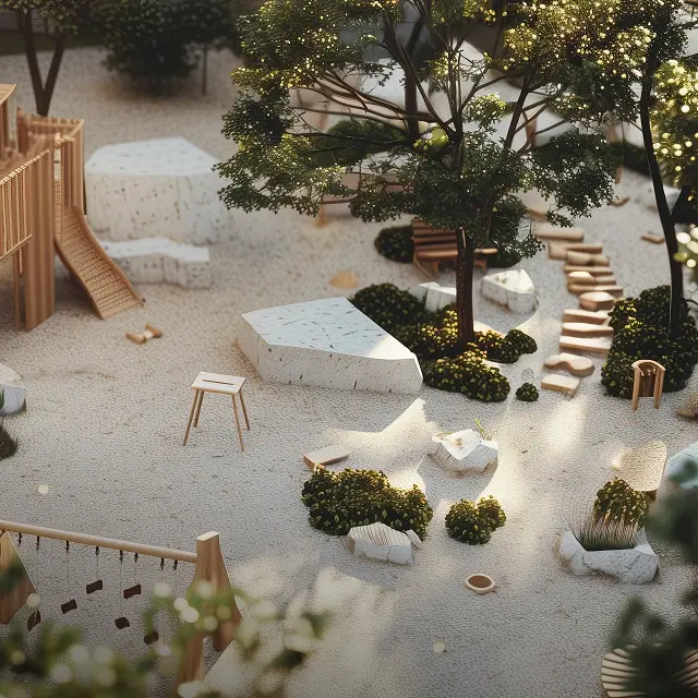 Man-made forest garden features towering pine trees adorned with bushy crowns, verdant juniper, and delicate clusters of fieldfares. Step out of the shimmering shade into a forest clearing and hold the sunshine in your hands.